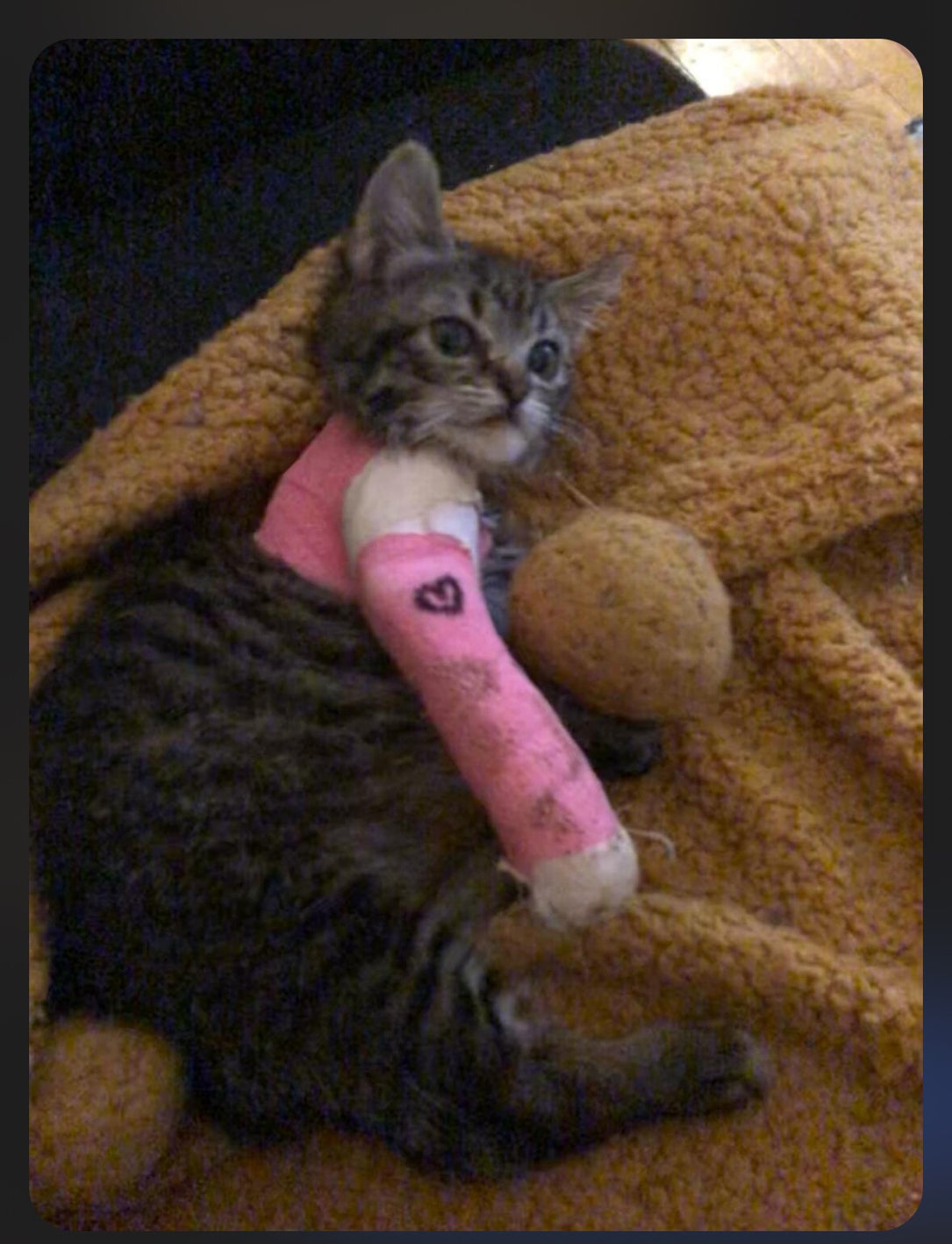 Kitten and cats just like Stormy below, we rescued this injured girl from a local park in a storm. We got her to a vet and then our partners Street Cats Club out of Emporia, SCC took over her vet care and fostering. She is now ready for adoption from these great partners.